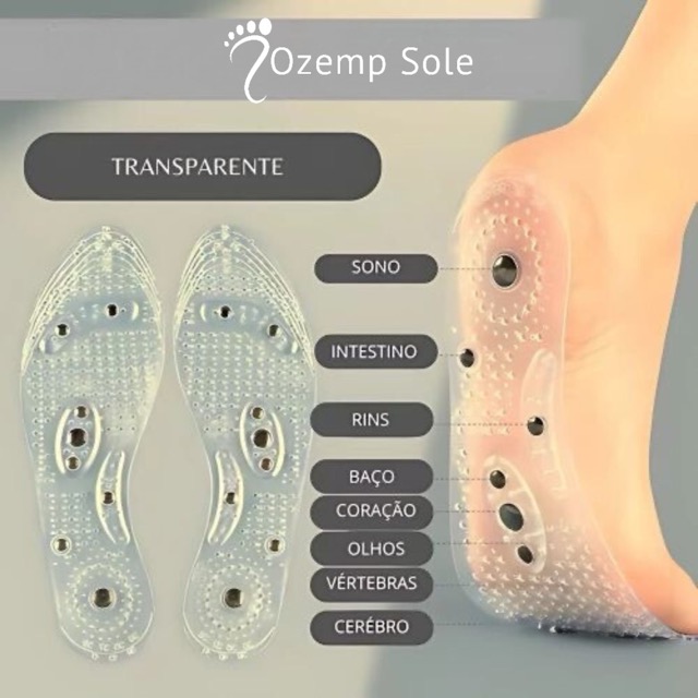A Ozemp Sole™ foi criada com tecnologia de acupressão magnética que estimula a circulação, reduz o inchaço e acelera o metabolismo oferecendo leveza e energia em cada passo do seu dia.